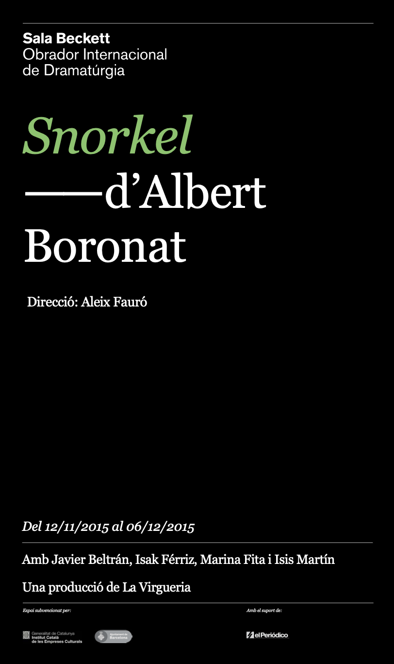 Snorkel, d’Albert Boronat. Direcció d’Aleix Fauró. Sala Beckett, Barcelona. Novembre 2015.