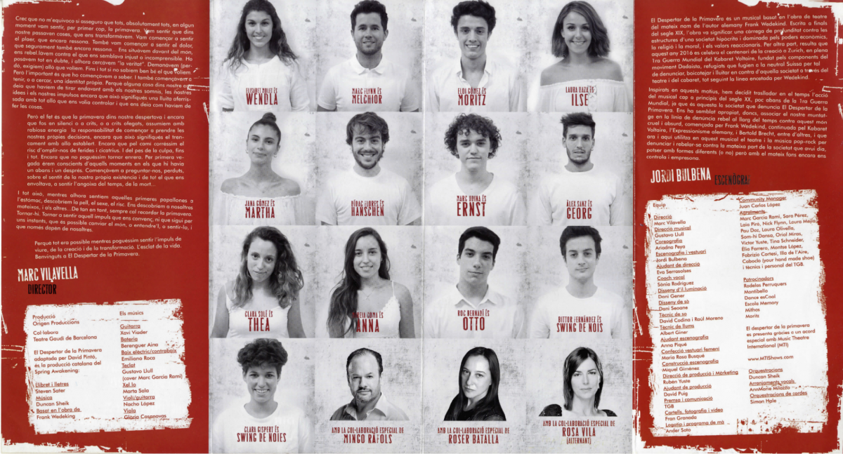 Fotografies 1 i 2: Programa d'El despertar de la primavera (14 novembre 2016 - 12 febrer 2017)