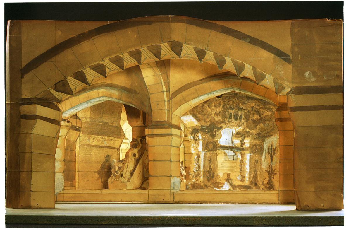 Escenografia atribuïda a La almoneda del diablo (Teatre Eldorado de Barcelona, 1890 ca.).. Font: Escena digital de Catalunya