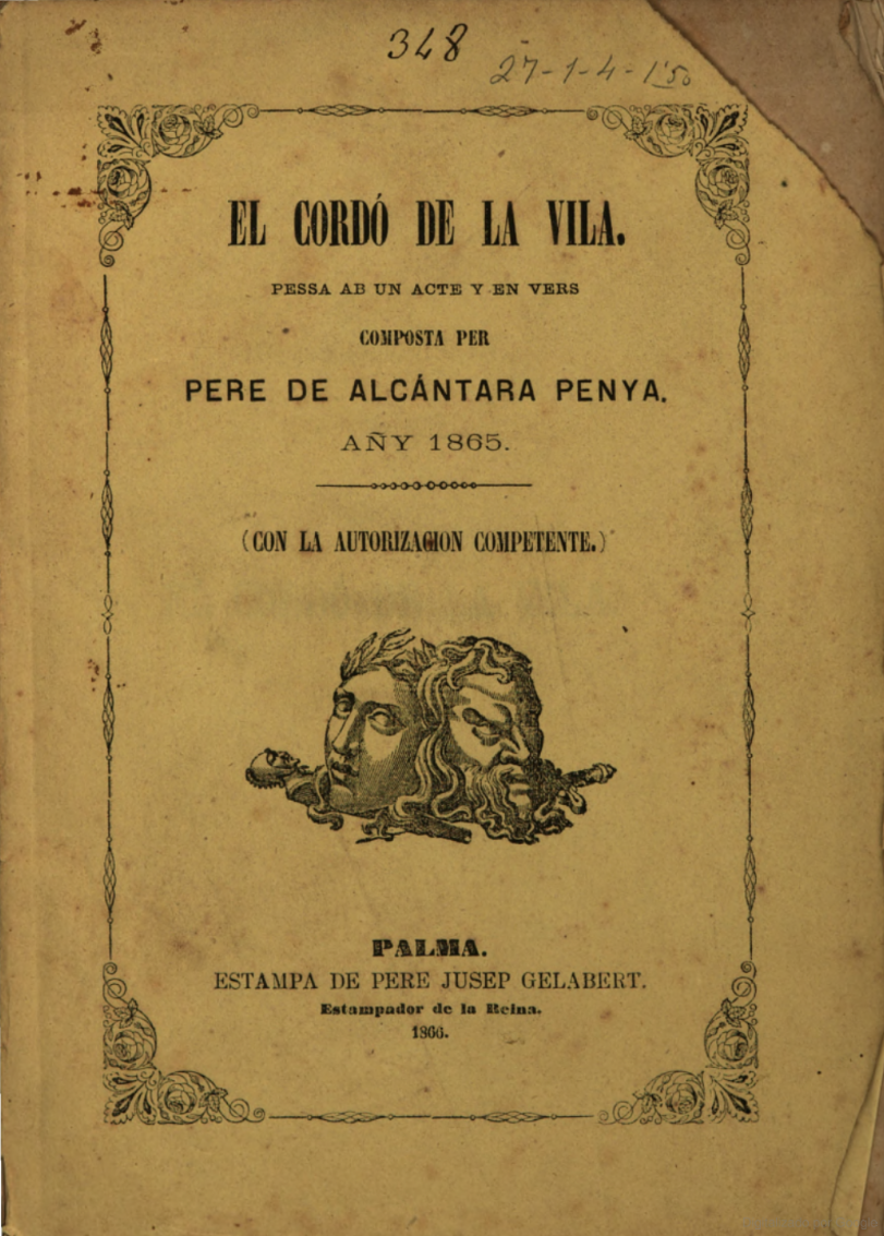 Primera obra dramàtica escrita per Pere d'Alcàntara Penya (1823-1906) durant l'estiu de 1865, a l'època en què Palma va ser assolada per una terrible epidèmia de còlera. Va ser publicada el febrer de 1866 i estrenada al Teatre Principal de la ciutat el 21 d'abril del mateix any. Les representacions es repetiren durant tota la temporada de primavera. L'autor, molt polifacètic, ja tenia una bona reputació com a poeta, litògraf, mestre d'obres i topògraf. Durant el contagi, a diferència d'altres ciutadans benestants, va restar a la ciutat i va activar les obres que dirigia com a arquitecte a fi de donar feina als jornalers desvalguts. Tractà el mateix tema al poema La gent del còlera.