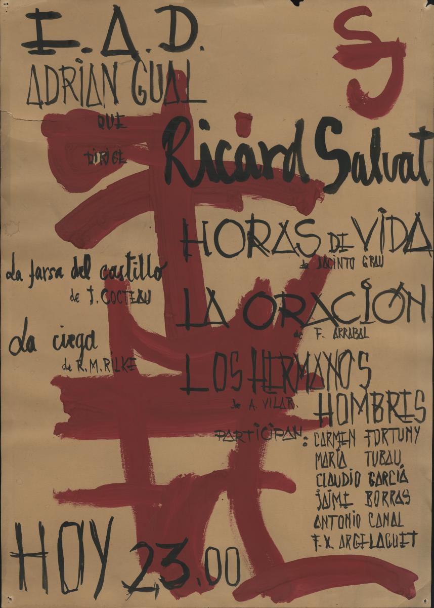 8 maig 1954. Solitud, de Víctor Català. Agrupació de Teatre Experimental. Teatre Capsa. Intèrprets: Maria Assumpció Fors, Narcís Ribas, Joan Albert, Josep Reniu, Maria Àngels Burzón, Ramon Ripoll i Jordi Rigual.