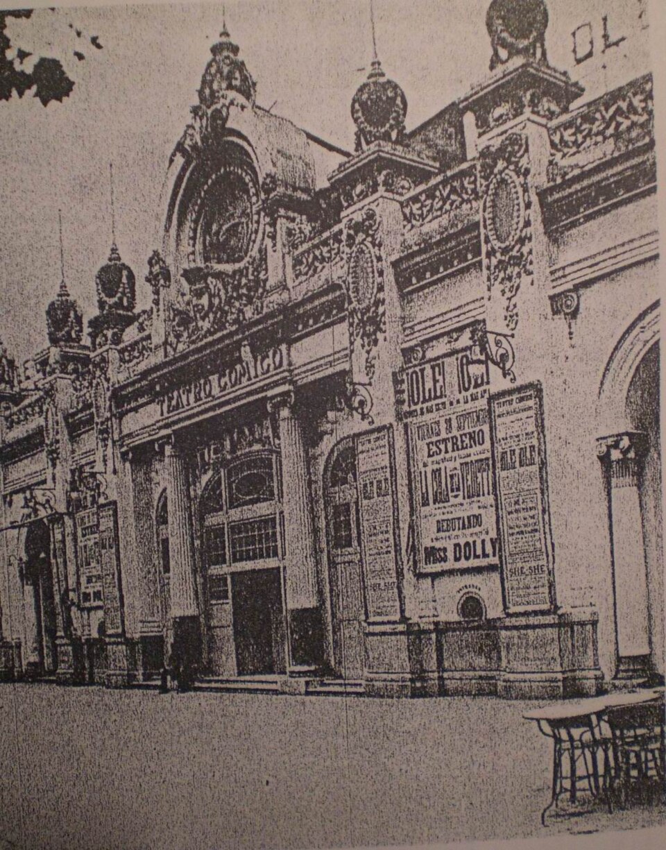 Inaugurat el 21 de juny del 1905, el Teatre Còmic, el primer propietari del qual fou Guillem Juncà Padró, era obra de l'arquitecte Manuel Joaquim Raspall. En el Còmic, Raspall, amb Andreu Audet i Salvador Vinyals, un dels arquitectes de més sales d'espectacle del Paral·lel, dona una enginyosa resposta a les circumstàncies que envoltaven la tramitació dels permisos d'obres en aquell període i, traient profit de la precarietat legal en què es movia l'arquitectura teatral de l'avinguda, arriba a definir un cert tipus arquitectònic. El teatre mantenia en planta una semblança evident a un magatzem o a un edifici industrial en tres naus, les laterals més estretes i la central més ampla. Una estructura fàcilment adaptable a l'espectacle, ja que, una vegada construïts, els pòrtics laterals es podrien transmutar en els pisos de llotges, i el central, en la platea. Per completar la transformació, en una crugia es va construir un mur amb una embocadura, que dividia l'espai en sala, d'una banda, i escenari, d'una altra.