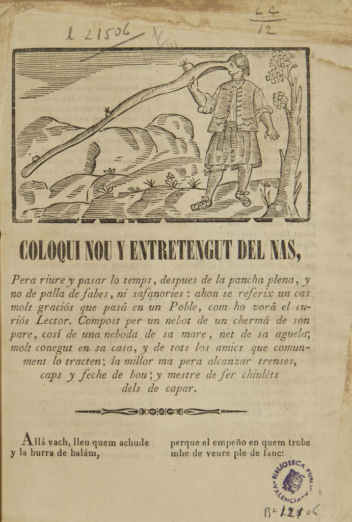 Figura 3. Coloqui del nas. Xàtiva: Imp i llibreria de Blay Bellver, 1879. Font: Biblioteca Valenciana.