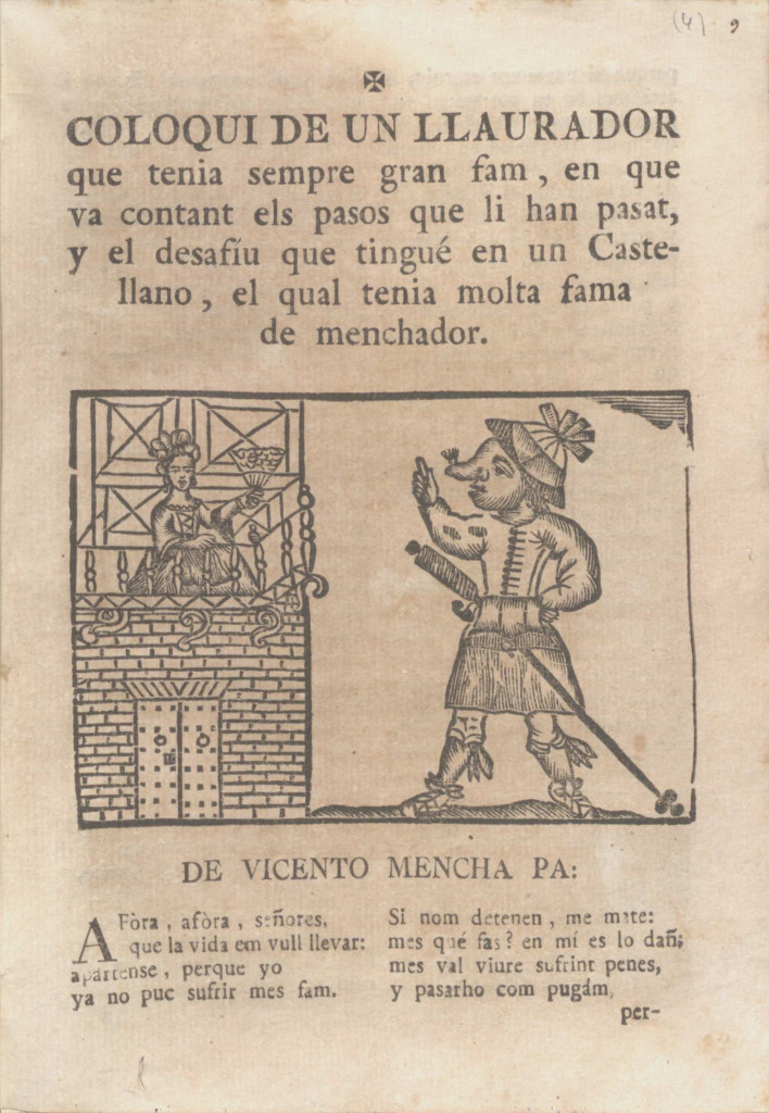 Figura 1. Ros, Carles. Coloqui nou pera divertir el mal humor... Dels festechants. s. ll., s. n., s. a. [segle XVIII]. Font: Biblioteca Valenciana.