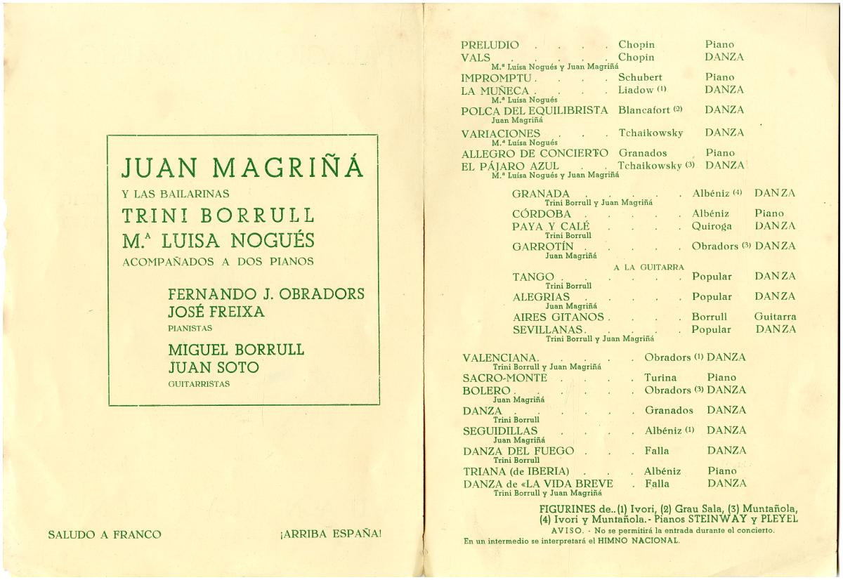 Joan Magrinyà i les seves ballarines: Trini Borrull i Mª Luisa Nogués. Palau de la Música (1939).. Font: Escena digital de Catalunya