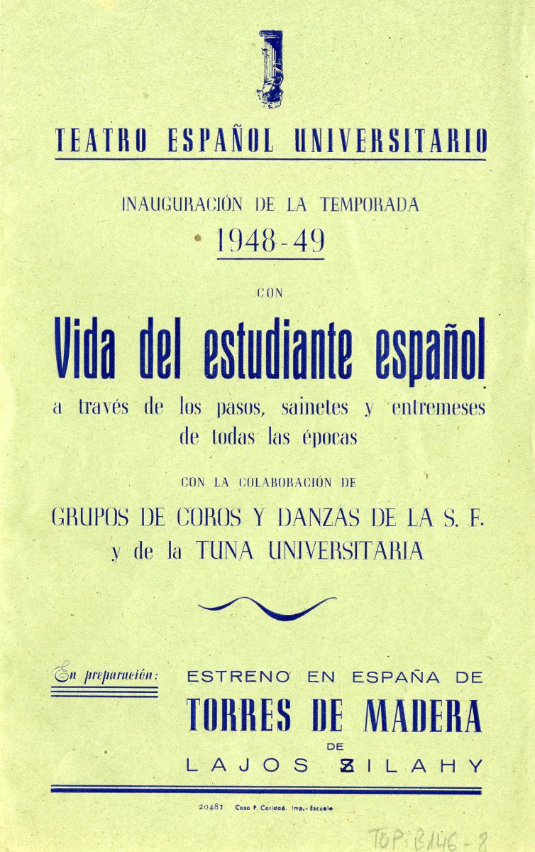 Vida del estudiante español. Teatro Español Universitario, 1948-1949. Font: Escena digital de Catalunya