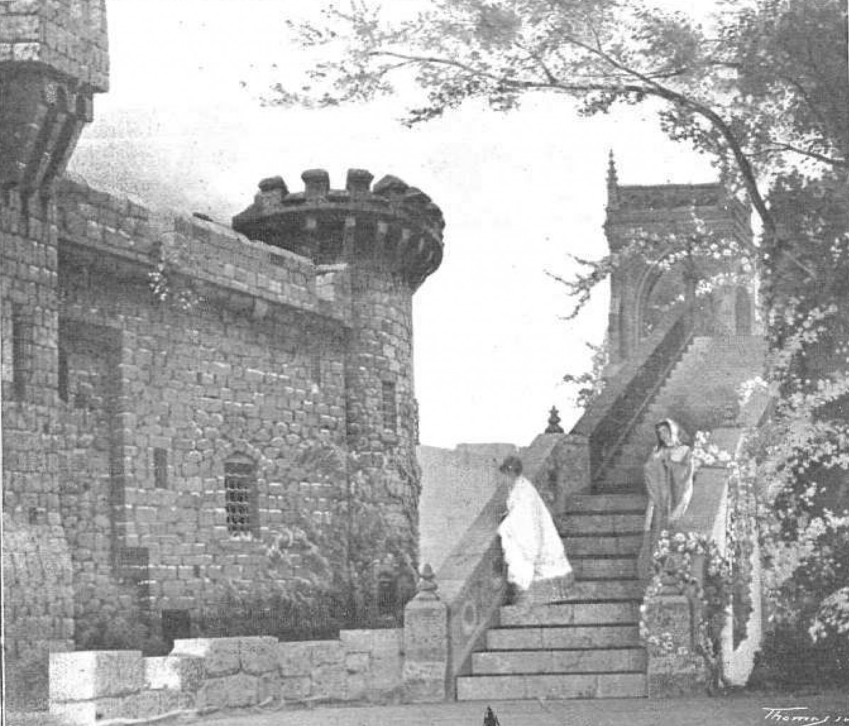 Fotografia 3: Escenografia de Maurici Vilomara y Oleguer Junyent per al segon quadre de La presó de Lleida. Font: Ilustració Catalana, núm. 149 (8 abril 1906), p. 209.