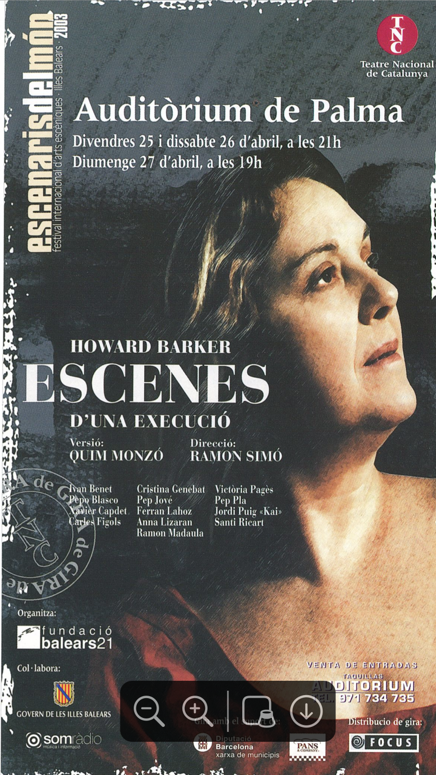 Programa d'Escenes d'una execució al Auditòrium de Palma, 25-27 abril 2003. Font: Escena digital de Catalunya