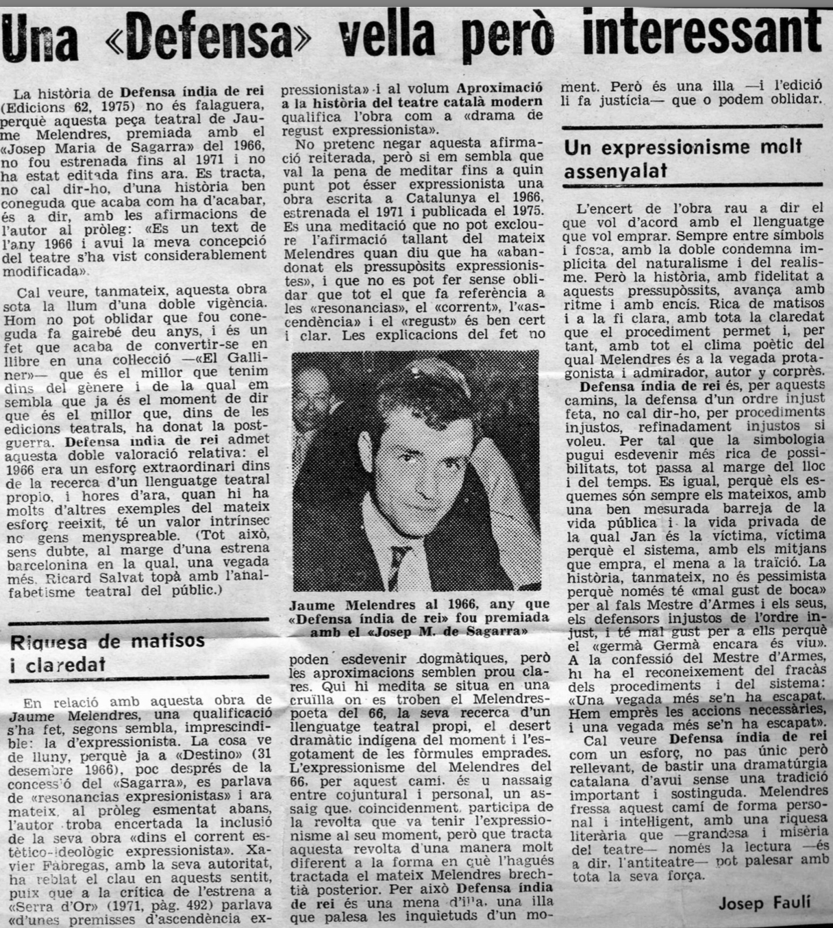 Riera, Pere. «La producció dramàtica de Jaume Melendres». A: Jaume Melendres i Inglès (1941-2009). Estudis Escènics, núm. 37 (tardor 2010). p. 33-45.