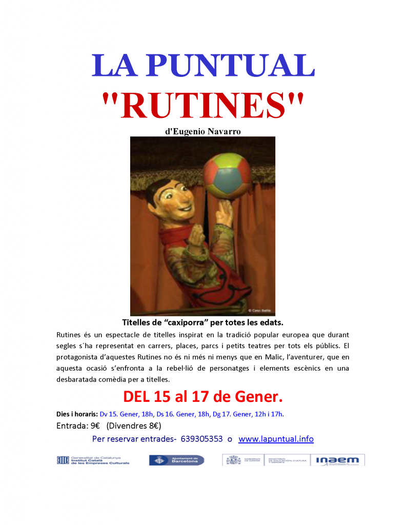 Rutines, un espectacle de putxinel·lis inspirat en la commedia dell’arte, iniciava una programació adreçada tant a infants com a adults, amb actuacions en castellà, català i anglès, cursos, tallers i sessions escolars seguides de col·loquis amb els manipuladors/titellaires. Programació que ha portat al petit escenari mestres de renom i llarg recorregut com l’ombrista Richard Bradshaw (Austràlia), companyies locals de joves titellaires o, fins i tot, la familia Baht, procedent de Rajastan i que durant més de cinc-cents anys ha transmès, de generació a generació, l’art de la marioneta. De fet, La Puntual –tal com passava a l’obra de Rusiñol– compta amb una segona generació que ha après l’ofici, en aquest cas el del titellaire Néstor Navarro, que de ben petit ja va conèixer el món dels titelles i que l’any 2018 va debutar a La Puntual com a titellaire-ombrista donant veu i moviment a en Malic, el protagonista de les històries de La Fanfarra. Actualment, també dirigeix La Puntual.