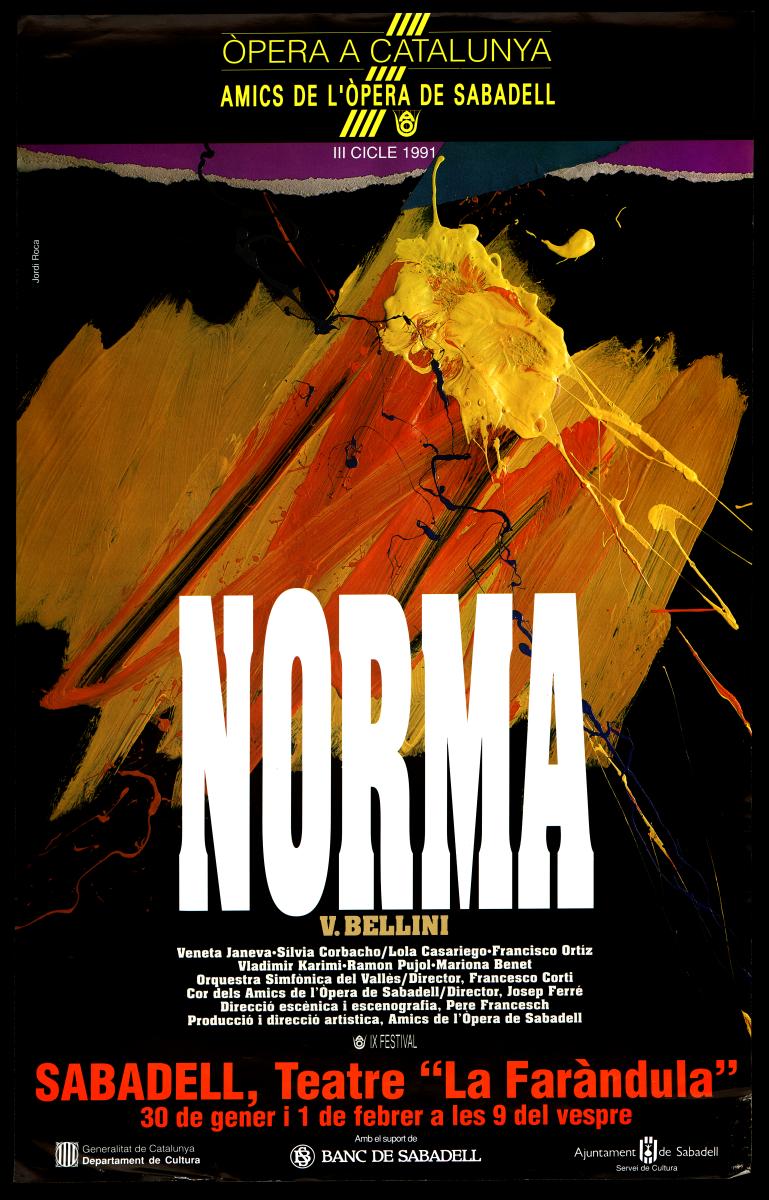 Cartell de Norma dels Amics de l'Òpera de Sabadell. Teatre Municipal de Sabadell La Faràndula, 30 gener - 1 febrer 1991. Font: Escena digital de Catalunya
