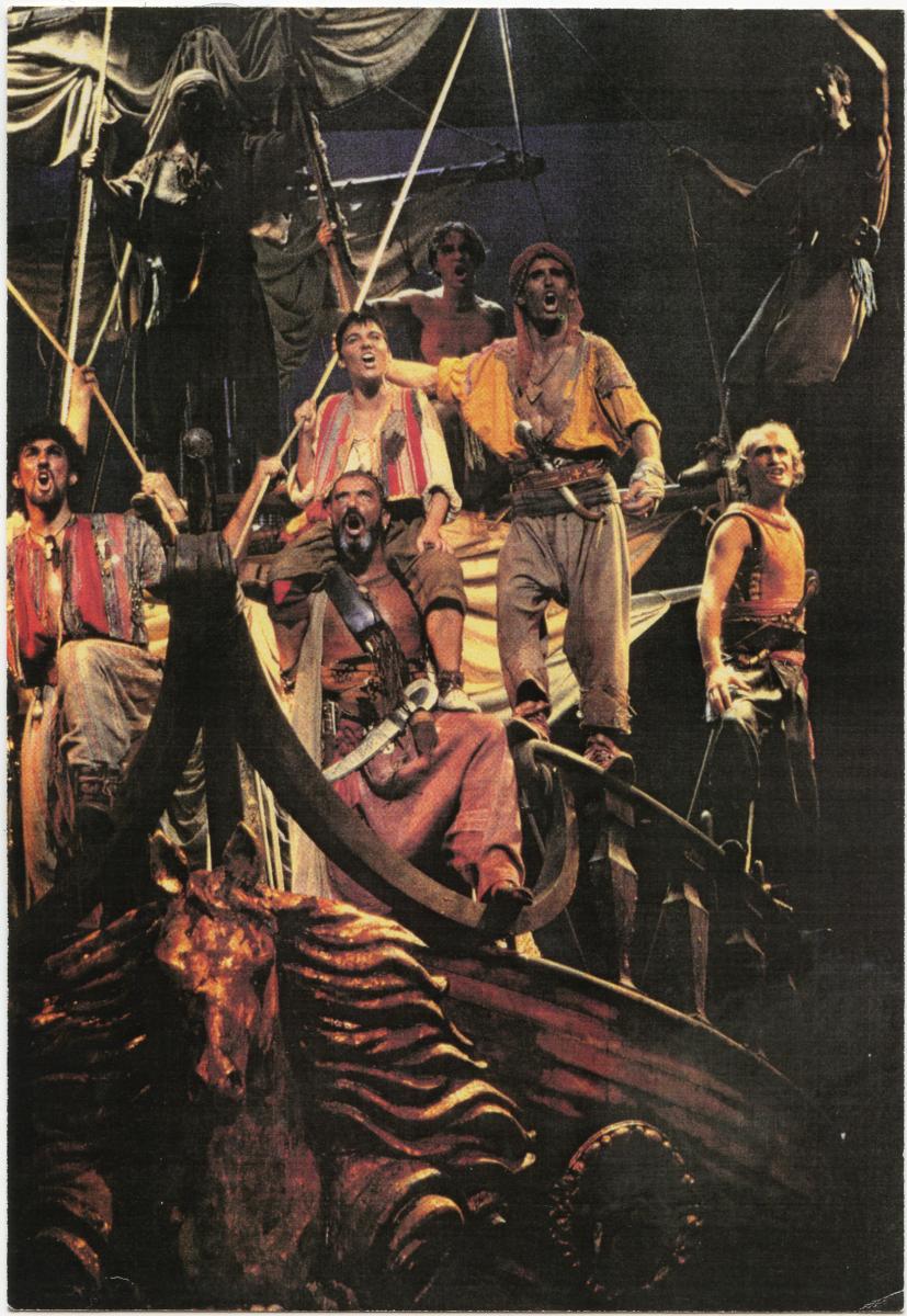 De la posada en escena destacà el muntatge escenogràfic, centrat en un enorme vaixell mobible, que capitalitza l'escena i nucli de l'acció. Cal fer esment de la música d'Albert Guinovart, amb passatges molt efectius i inspirats, com el duo de Blanca i Saïd «Per què he plorat?» i «L'himne dels pirates». Els actors principals foren Àngels Gonyalons, Carlos Gramaje i Miquel Periel.