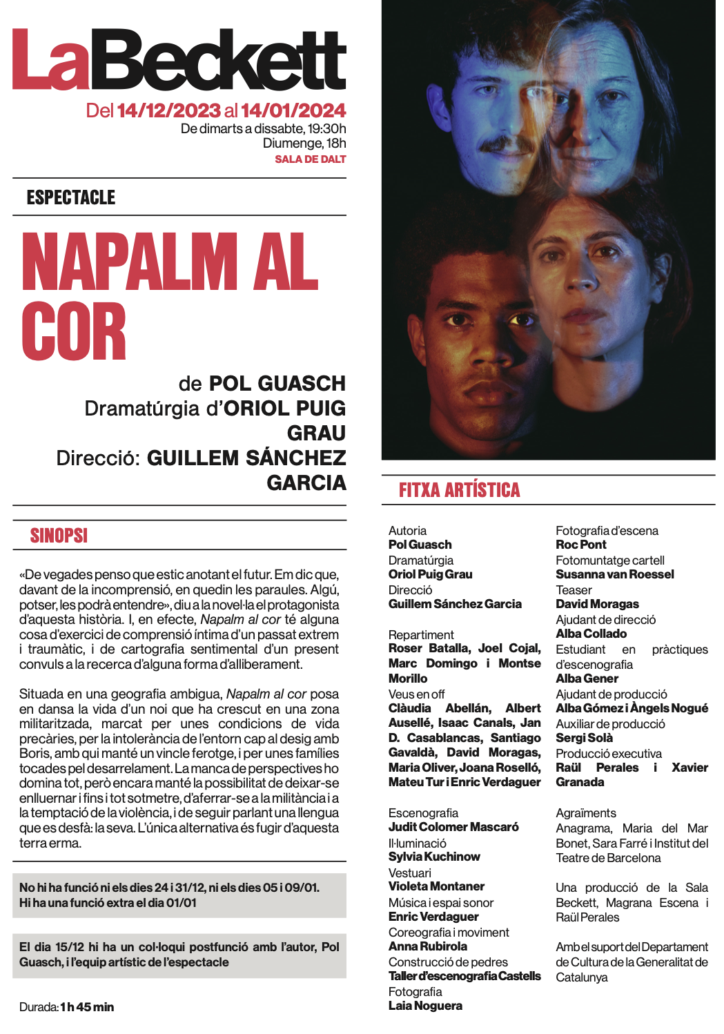 Napalm al cor. Sala Beckett, 14 desembre 2023 - 14 gener 2024. Font: Escena digital de Catalunya