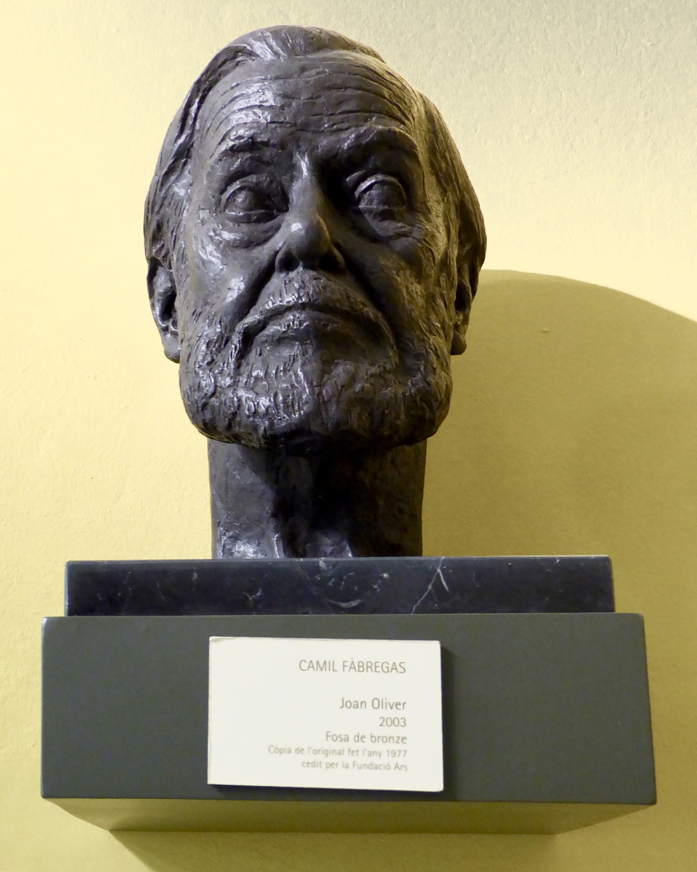 Bust de bronze de Joan Oliver i Sallarès, fet per l'escultor Camil Fàbregas, el 2003 (creative commons)