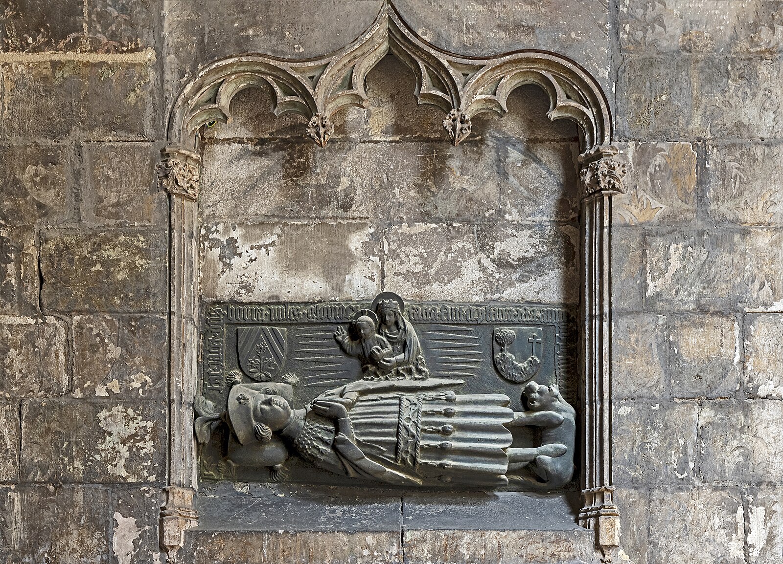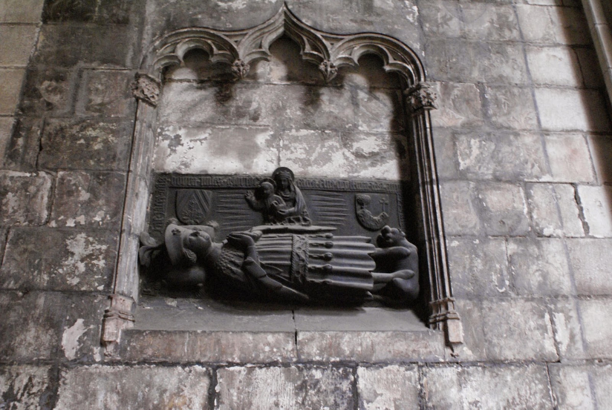 Làpida sepulcral al claustre de la Catedral de Barcelona: