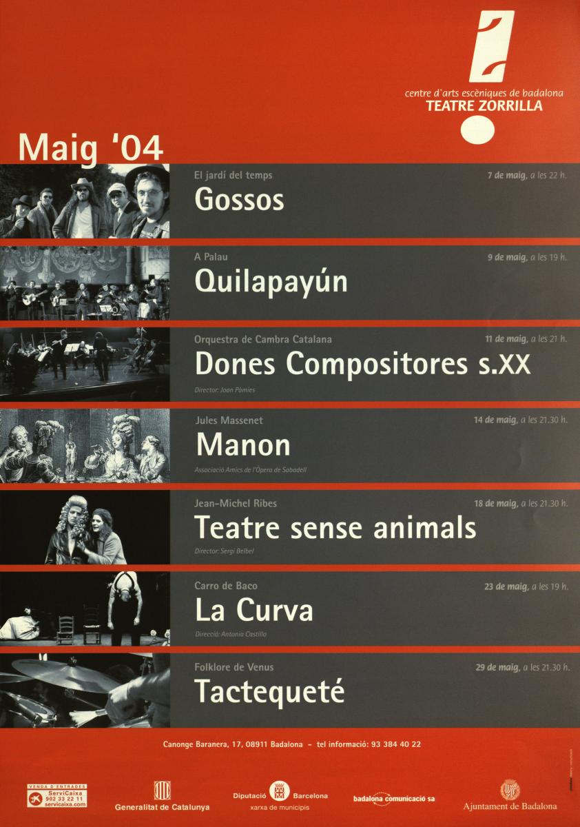 Programació del Teatre Zorrilla (maig del 2004).. Font: Escena digital de Catalunya