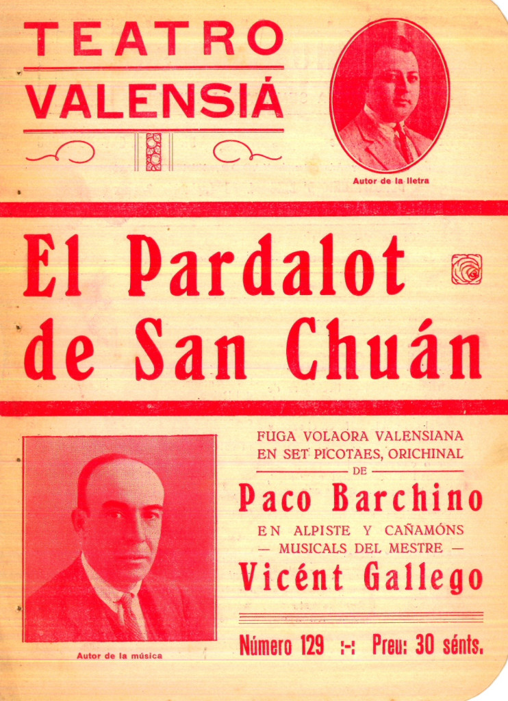 19 octubre 1928. El pardalot de Sant Joan. Música de Vicent Gallego. Saló Novetats, València. Pepe Beüt.