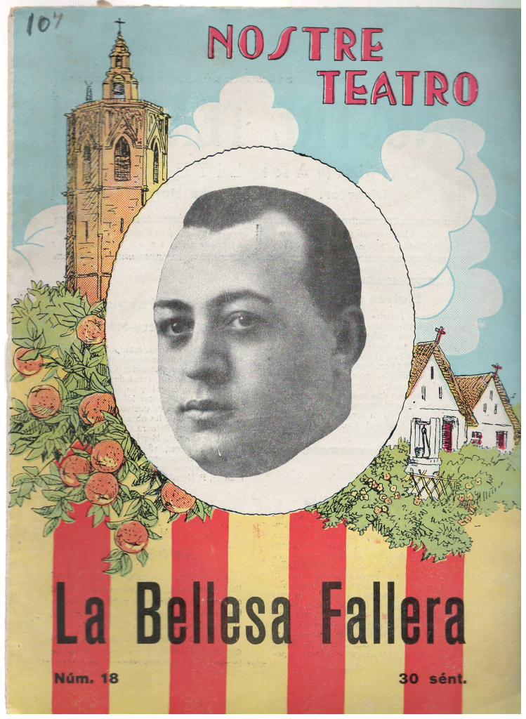 Fotografia 3: Portada de l'edició del sainet faller La bellesa fallera. València: Nostre Teatro, núm. 18 [2a època]. Editorial Carceller, 1931.