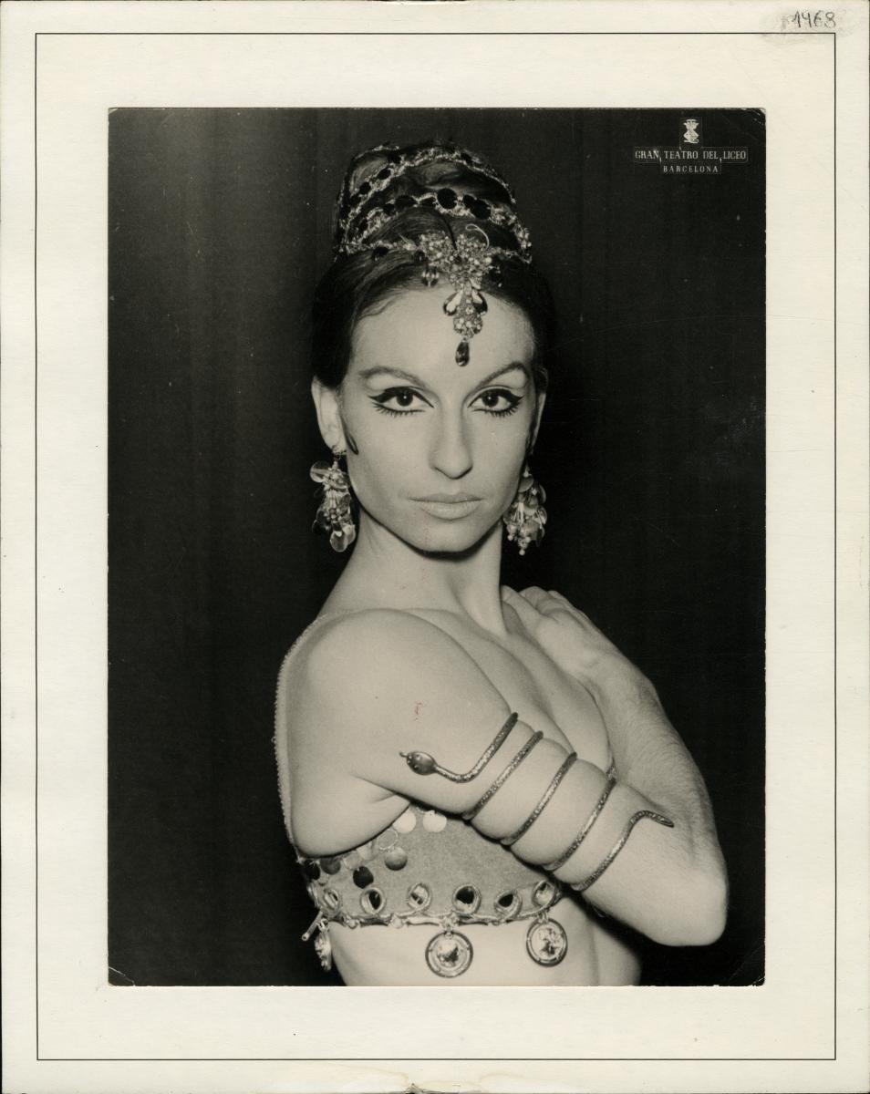 Retrat d'Assumpció Aguadé en l'espectacle La leyenda de José (1968) al Gran Teatre del Liceu de Barcelona. Aguadé va representar el paper de Sulamith, una esclava. Ballet del Liceu. Ballet del Gran Teatre del Liceu.. Font: Escena digital de Catalunya