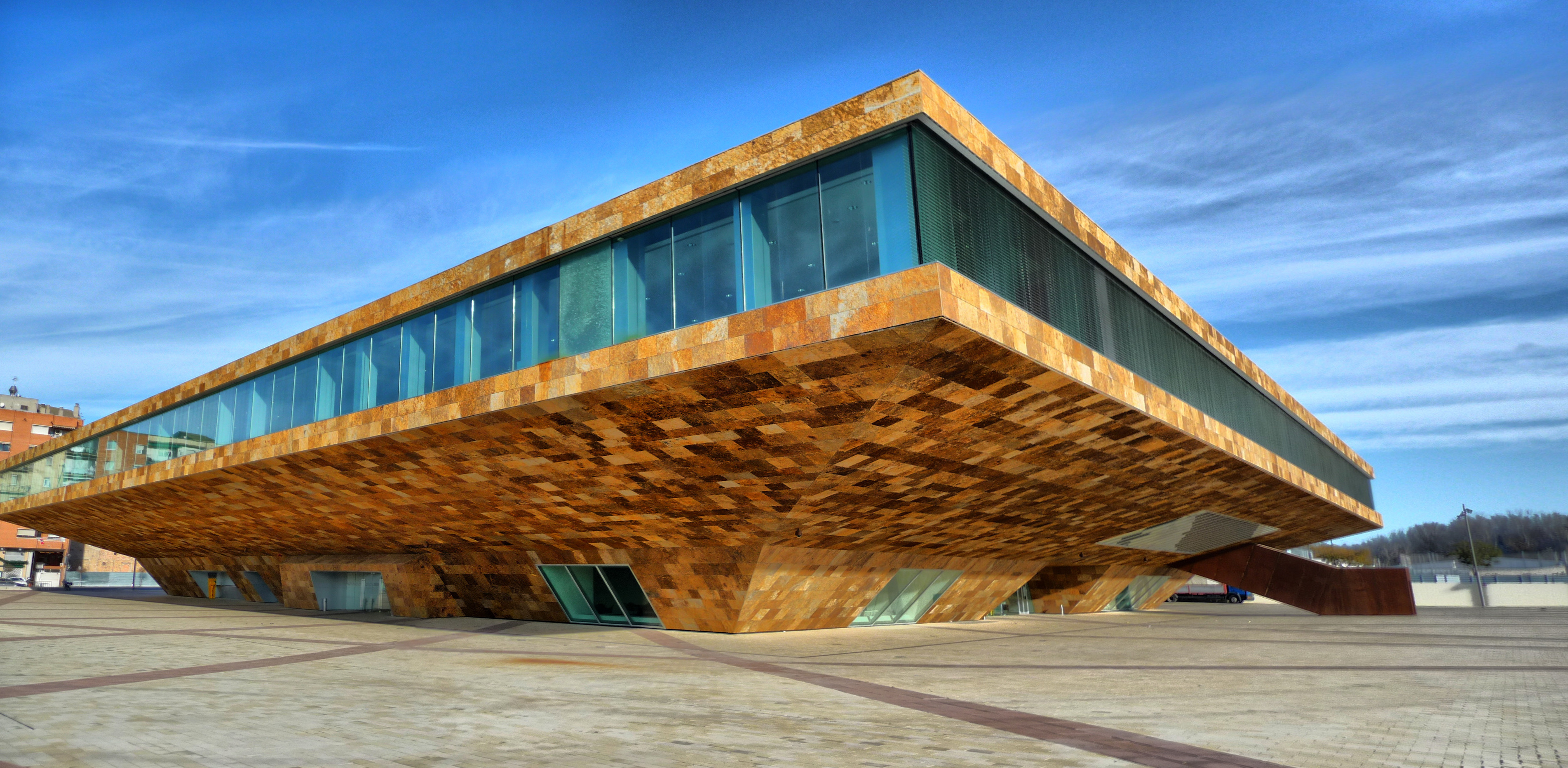Els autors del projecte es van basar en diversos elements del context per tal de conferir al volum de l'equipament una sèrie de relacions i lligams identificables, del cultural al paisatgístic. La volumetria general i els colors de la pedra de les façanes, procedent del Brasil, remeten a les formes fortificades del Castell del Rei —la Suda—, la silueta de les muralles i de la Seu Vella, que es veuen des d'un dels foyers. Hom ha fet referència també a les formes d'un cistell, i fins i tot a un brollador d'aigua, per la seva situació a tocar del riu. Els grans ràfecs que forma la gran plata elevada i amb voladissos pels quatre costats fan funció a la vegada d'umbracle i de recer, i proveeixen l'interior d'una cambra d'aire amb efectes climàtics. Els colors i geometries en algunes superfícies interiors recorden les fulles d'arbres, com el perer, el presseguer o el pomer. Aquesta mateixa referència a la terra, el paisatge i els fruits lleidatans també es troba a la sala teatral, sobretot en la varietat multicolor de les butaques, en les fulles retallades i que funcionen com a punts de llum del sostre i amb efectes acústics, i a les pantalles il·luminades que als murs laterals formen el dibuix de grans arbres.