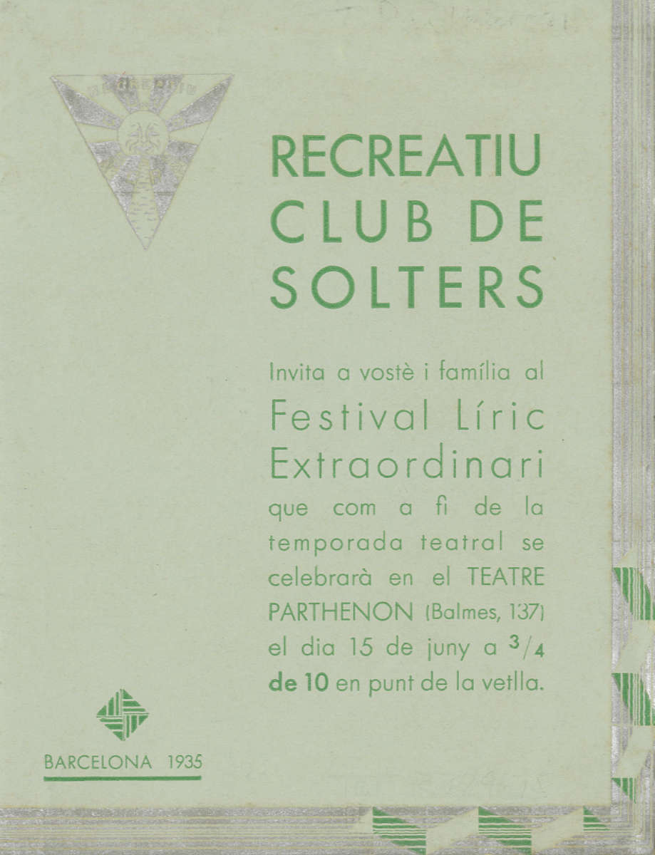 Invitació. Festival líric extraordinari. La princesa del dollar. Teatre Parthenon, 15 juny 1935. Font: Escena digital de Catalunya