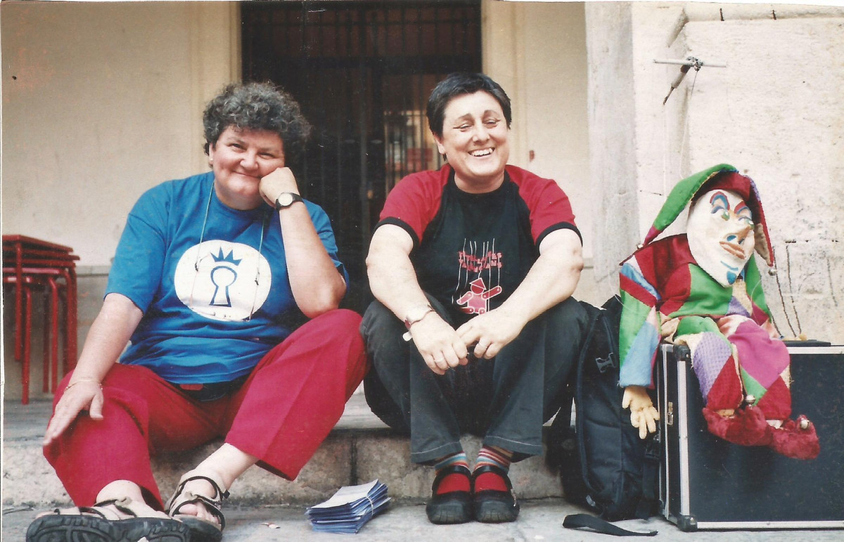 Empar Claramunt i Carme G. Corberán, els dos components del grup Teatre Buffo, amb un dels seus titelles.