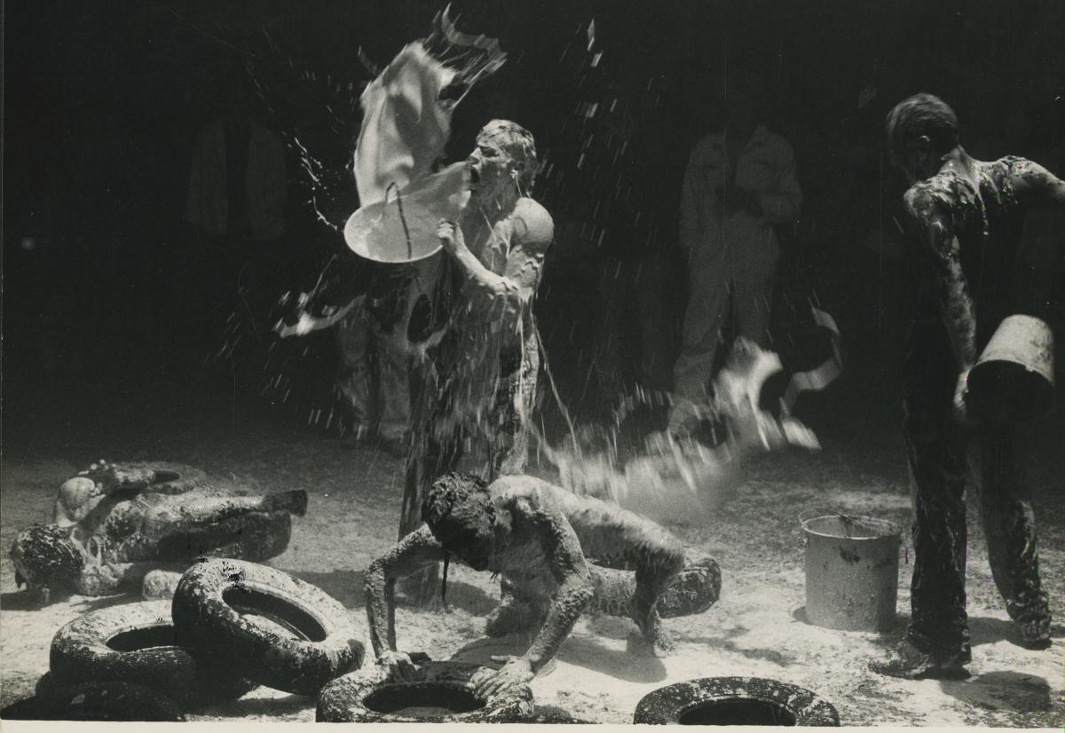 Fotografia d'Accions de La fura dels baus a Copenhaguen (1984).. Font: Escena digital de Catalunya