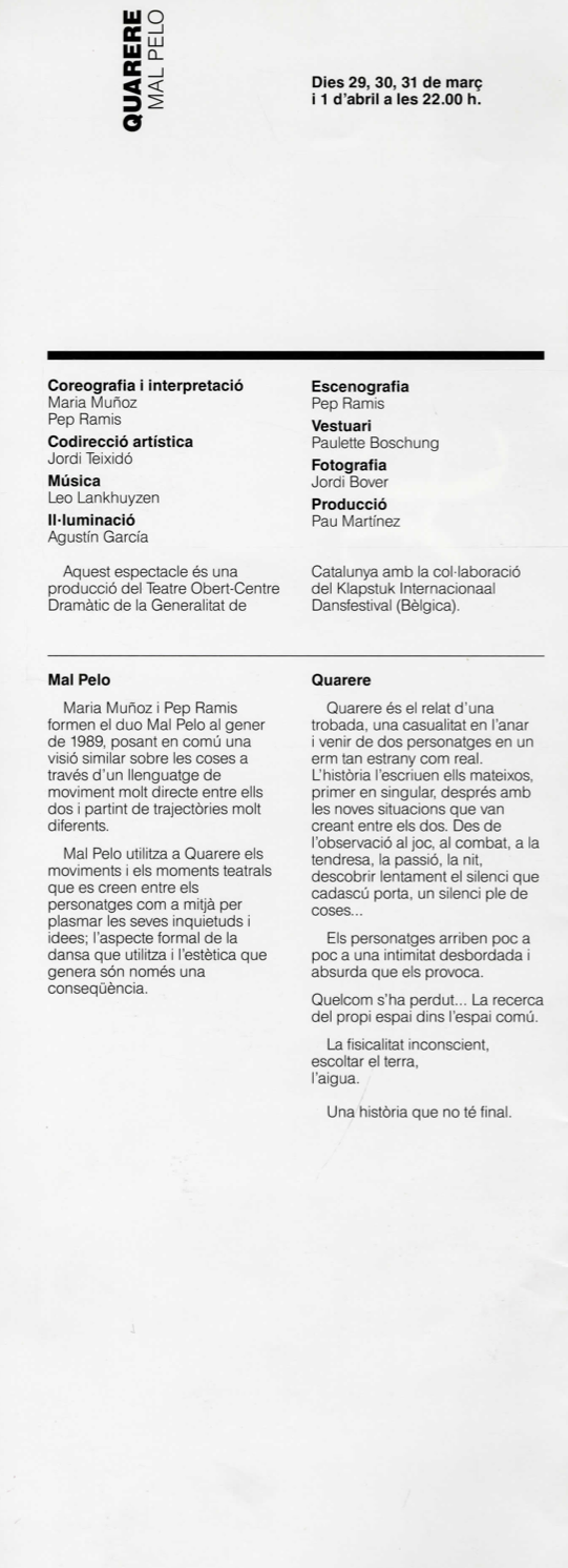 Dansa al Teatre Obert, 15 març - 7 abril 1990. Font: Escena digital de Catalunya