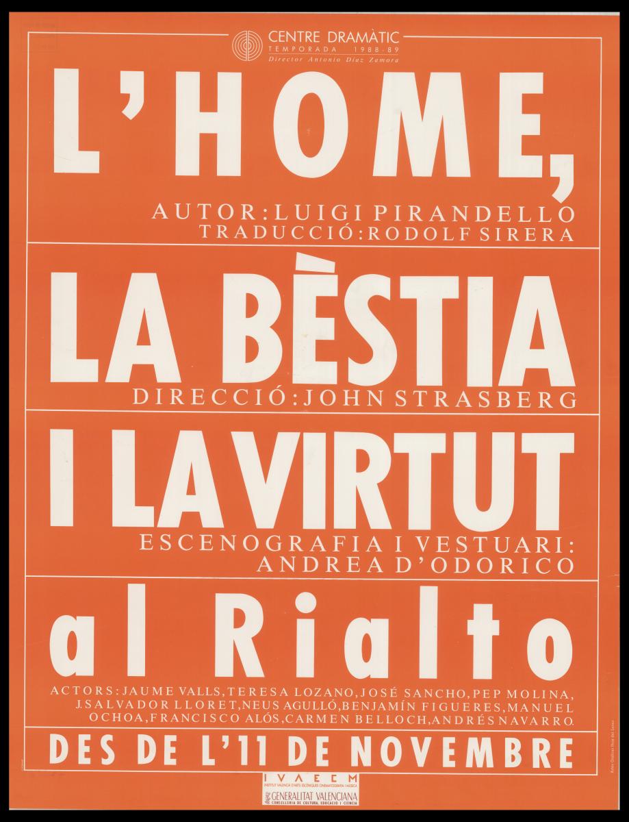 Cartell de L'home, la bèstia i la virtut al Teatre Rialto. Font: Escena digital de Catalunya