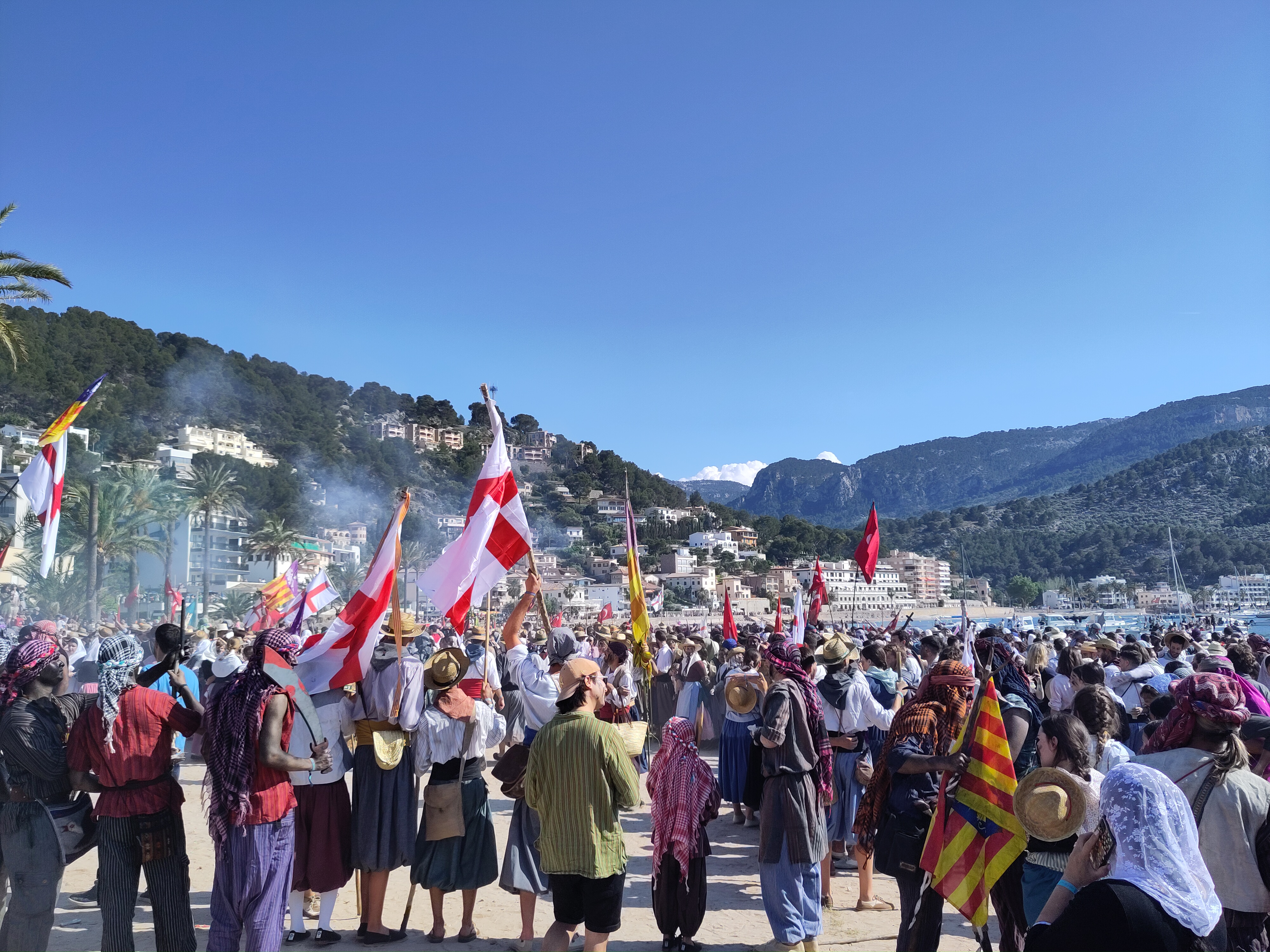 A Sóller, el simulacre repeteix la majoria dels elements que s'han descrit a la celebració pollencina i tenen una significació semblant per al poble. Se celebra anualment el segon dilluns de maig, durant el Firó, com a continuació dels actes de la Fira de Maig. L'Ajuntament de Sóller decidí commemorar l'atac fallit dels corsaris musulmans a Sóller, esdevingut el 12 de maig del 1561 i encapçalat per Ului Ali, amb la celebració d'unes fires anuals el segon diumenge del mes de maig, que es dugueren a terme per primera vegada el 1854. Aquest any, la presència d'elements teatrals que evocaven el simulacre va ser més aviat escassa i consistí en una processó formada pel regiment d'Isabel II i els gremis, en la qual desfilaven nins vestits de moros i d'altres de cristians, vestits a la mallorquina, armats i capitanejats per un jove que representava Joan Angelats. També hi desfilava la «tanca» de can Tamany, portada per dues nines vestides de pagesa antiga, que simbolitzaven l'acte heroic de Francesca i Caterina Casasnoves, les Valentes Dones de can Tamany, que, segons la tradició, mataren un moro amb la barra de tancar la porta, el llançaren per la finestra i espantaren l'escamot que pretenia saquejar la seva hisenda. El 1855, només un any després, ja s'escenificà la batalla a la platja del port de Sóller, amb més de nou mil espectadors. Els joves protagonistes pertanyien a la Milícia Nacional. Els que representaven els moros eren caracteritzats pels calçons que duien i entraven al port amb llaüts i amb el seu estendard identificador. Els cristians els esperaven a diversos indrets de la mar, dividits en tres companyies. Mentre la banda de música tocava marxes militars i després d'alguns intents, els moros aconseguien desembarcar a la platja, on tot seguit eren envoltats pels cristians, que s'apoderaven de l'estendard i els feien presoners. Aleshores es produïa la desfilada i l'entrada triomfal al poble. Progressivament, la festa va perdre el caràcter militar i se n'accentuà el popular. En l'actualitat, el simulacre s'inicia amb el discurs de Joan Angelats a la plaça de la Constitució de Sóller, que anima les tropes cristianes a lluitar contra els sarraïns. Traslladats al port, entren els llaüts carregats de corsaris que llancen bengales i fan foc amb els arcabussos. La resistència cristiana n'impedeix el desembarcament a la platja des Través, tot i que els sarraïns obtenen una victòria parcial i desembarquen a la platja d'en Repic, on finalment són vençuts al camp de s'Oca, proper a Sóller. Després, a la plaça del poble, Joan Angelats felicita els seus homes i les Valentes Dones de can Tamany, vestides de riques pageses, amb una barra cada una com a al·lusió a la seva gesta, i dona les gràcies a la Verge de la Victòria. L'escenificació acaba amb una processó que porta la imatge de la Verge a l'Església de l'Hospital. També hi ha una desfilada de carrosses, presidida per la de les Valentes Dones.
