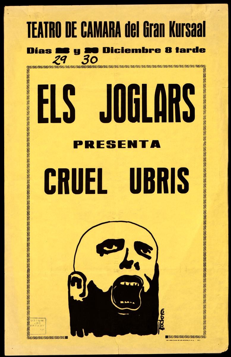 Cruel Ubris. Teatro de Cámara del Gran Kursaal, 29 i 30 de desembre de 1971. Font: Escena digital de Catalunya