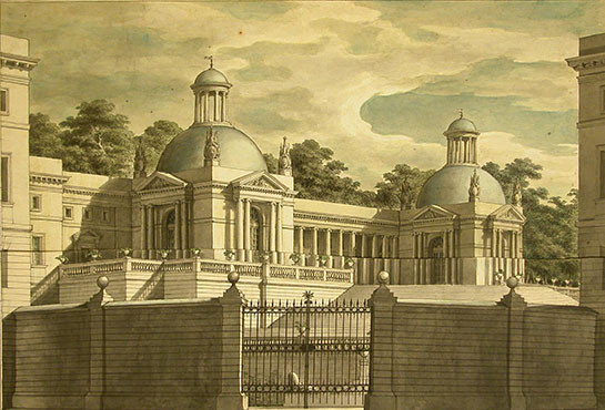 Fig. 2 Giuseppe Lucini, Edifici neoclàssic, tècnica mixta, Museu de les Arts Escèniques de Barcelona, 1802. Topogràfic: P8.