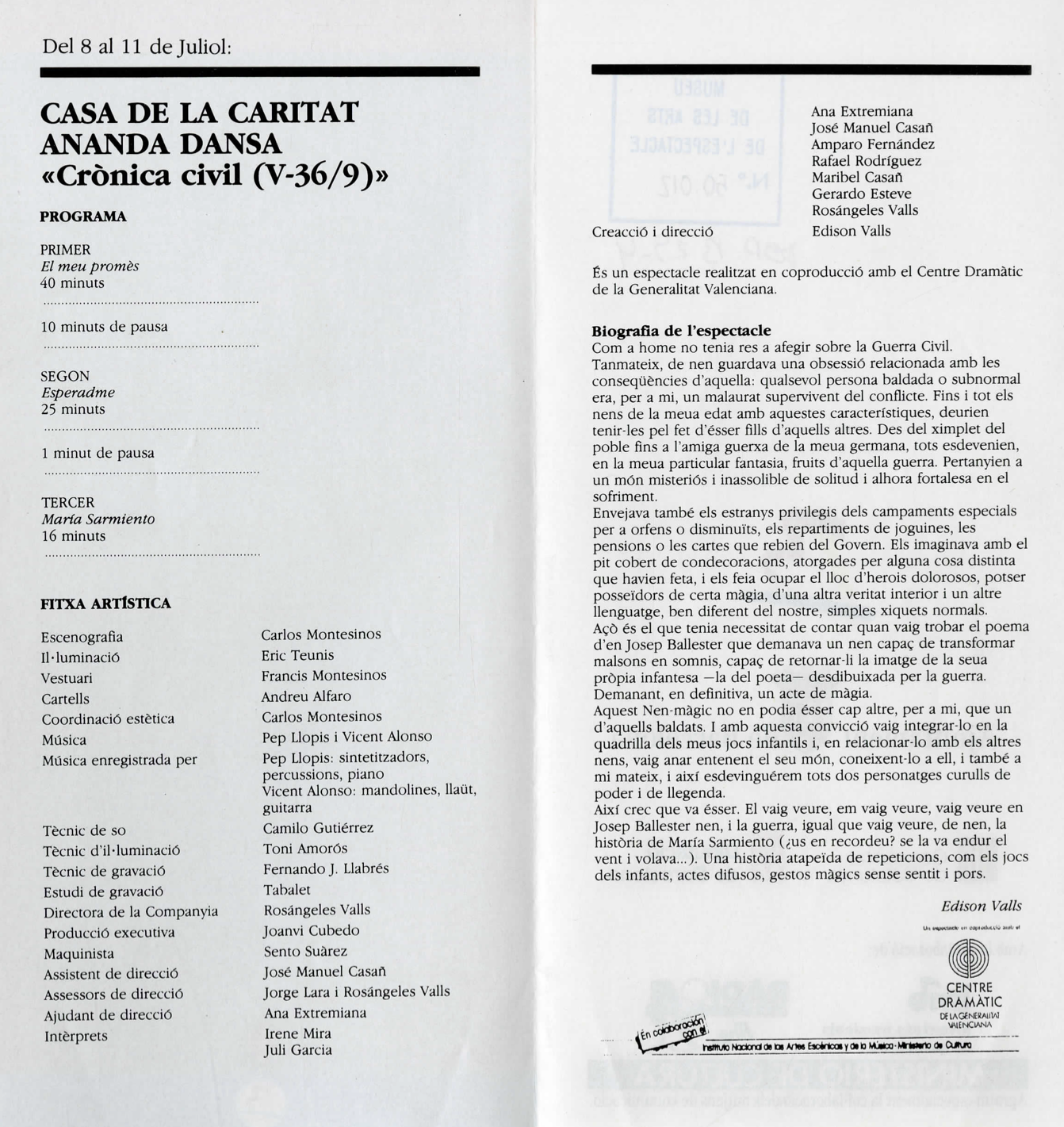 Ananda Dansa. Crònica civil (V-36/9). Casa de la Caritat. 8-11 juliol 1987. Font: Escena digital de Catalunya